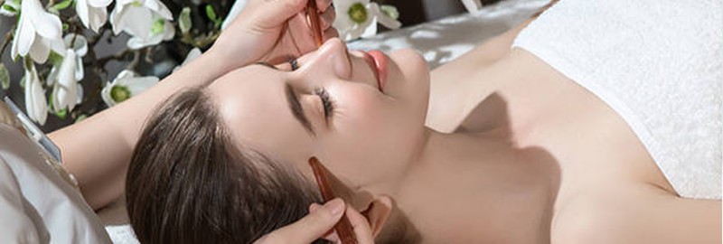 Gua Sha techniek (schrapen) bestaat uit een reiniging, epileren, oneffenheden verwijderen, masker, dagcrème en hoofdmassage.